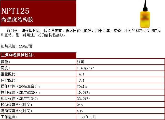結構粘接系列產品用于金屬、陶瓷、塑料、橡膠、木材等同種材料或者不同材料之間的粘接,與一般結構膠相比強度高、抗剝離、耐沖擊、工藝簡便,可部分代替焊接、鉚接、螺栓連接等傳統連接形式。