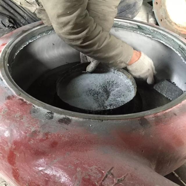· 制作:模具、工具準備,將工件預熱,膠粘劑預熱,嚴格按照膠粘劑配比進行混合攪拌,攪拌完成后的膠粘劑盛在料盤中對預熱完成的工件進行施膠,混合后的膠粘劑在料盤中停留時間不能超過3分鐘,以保證膠粘劑對工件的充分粘合。施工完成后,對檢查出的缺陷進行及時修補。