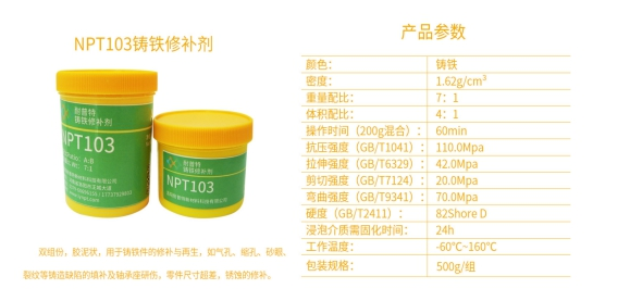 鑄鐵缺陷修補劑是通用型鑄造缺陷修補膠,與機體結合強度高,固化后硬度高、無收縮,可進行各類機械加工,具有耐磨損、耐老化、耐油、防水、抗腐蝕、耐高溫的性能。