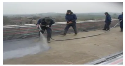 4、如果缺陷部位發(fā)現(xiàn)離噴涂時(shí)間較長(zhǎng)(>6h),則應(yīng)對(duì)缺陷涂層表面(向外擴(kuò)展5-10cm范圍)打磨清理后,施作專(zhuān)門(mén)的處理劑,然后采用專(zhuān)用修補(bǔ)設(shè)備噴涂聚脲防水涂料并修補(bǔ)、刮平,使整個(gè)涂層連續(xù)、致密、均勻。