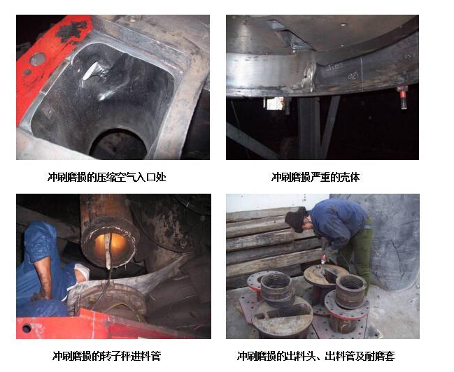 煤粉轉子秤進料口、出料口、壓縮空氣入口、殼體等部位作為輸入和輸出煤粉的主要設備部件,該部位長期受煤粉的沖擊沖刷,嚴重時可造成部件局部穿孔,使設備造成重大損傷并且影響煤粉計量和存在安全隱患。該類問題長期存在于設備使用過程中,常規的補焊修復工藝加速了部件的報廢速度,迫使企業投入高昂的費用采購備品備件,為此企業加大了運營成本。并且企業為此增加很多的停機時間,嚴重影響設備的安全連續化運行。
