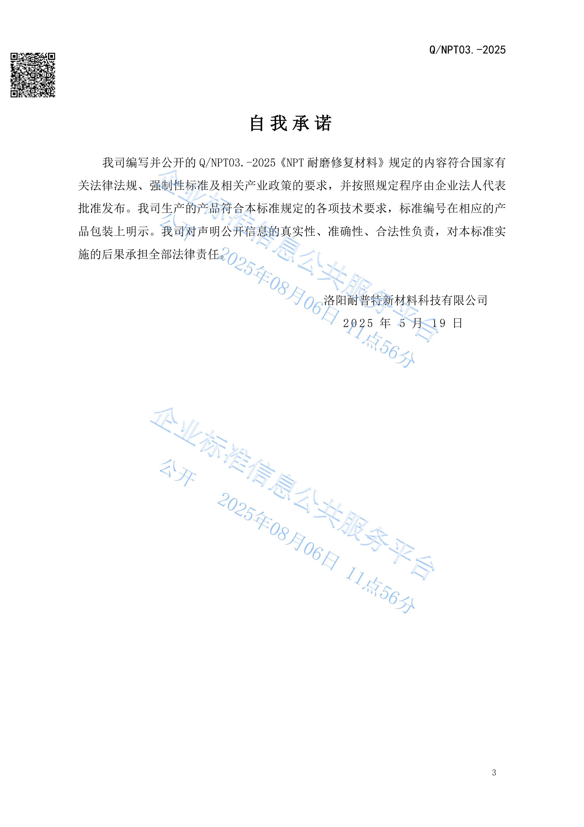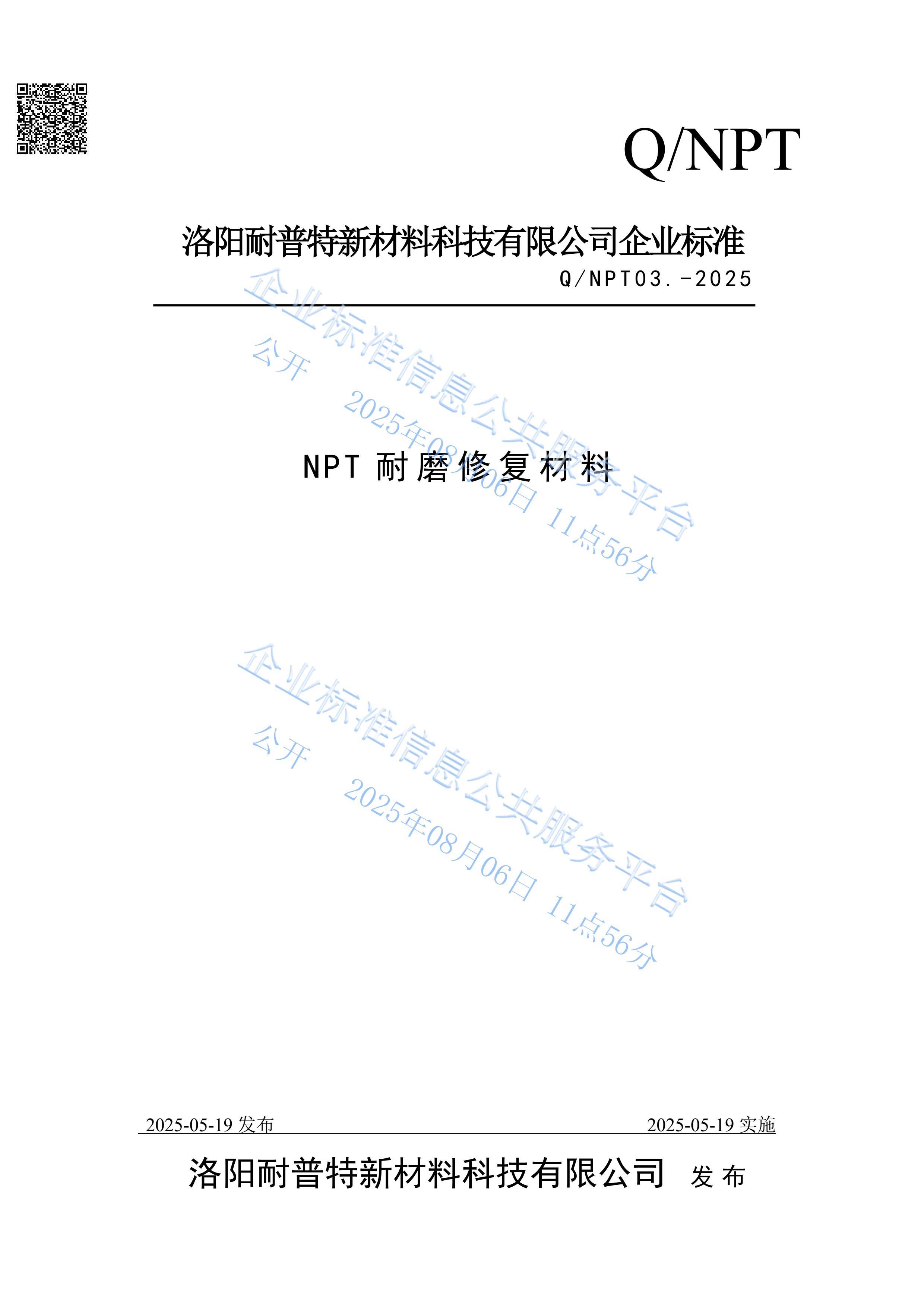 NPT耐磨修復材料企業發布標準